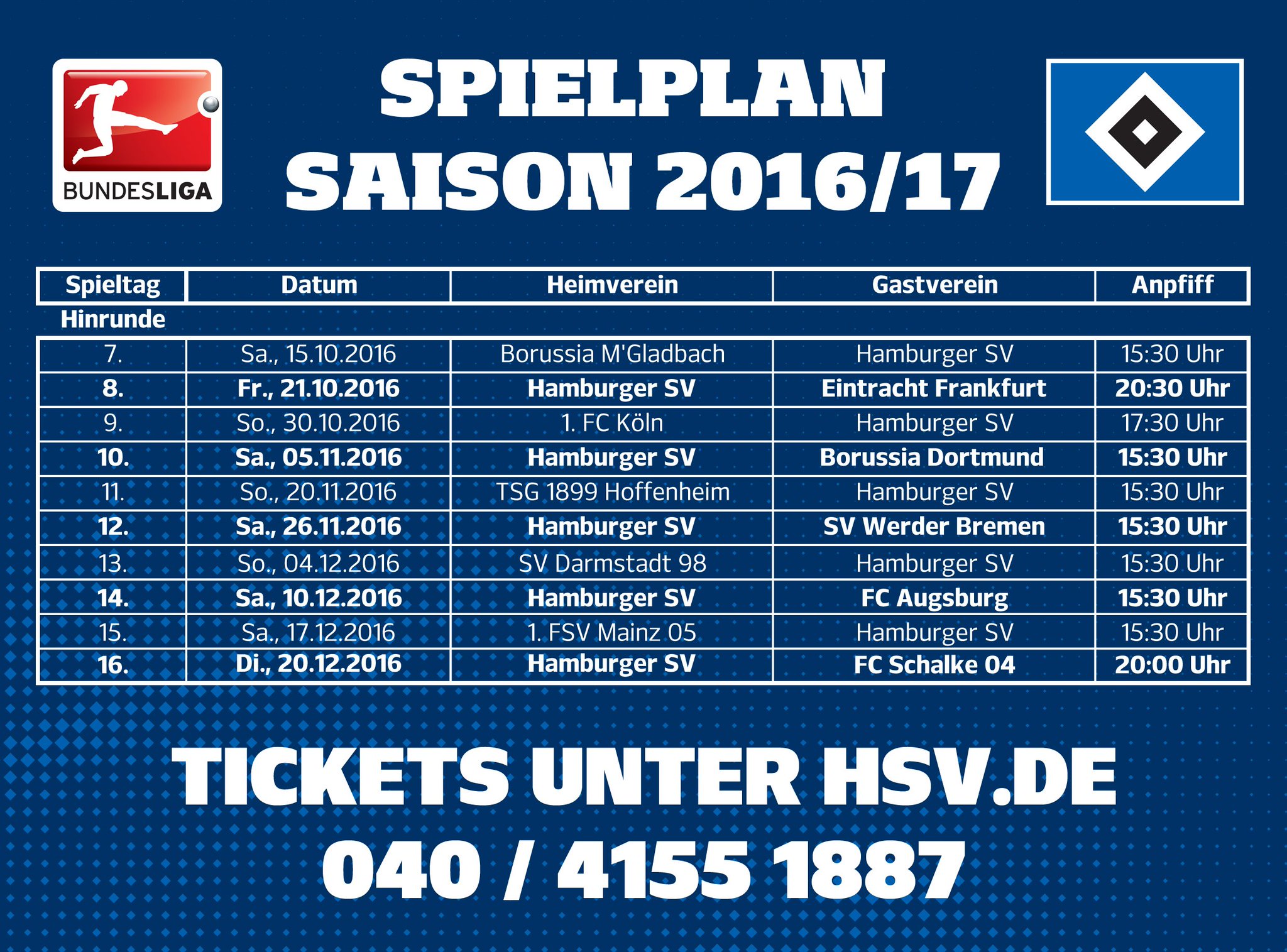 Hamburger Sv On Twitter Neue Terminierungen Fur Unseren Bundesliga Spielplan Die Spieltage 13 16 Sind Zeitgenau Angesetzt Nurderhsv